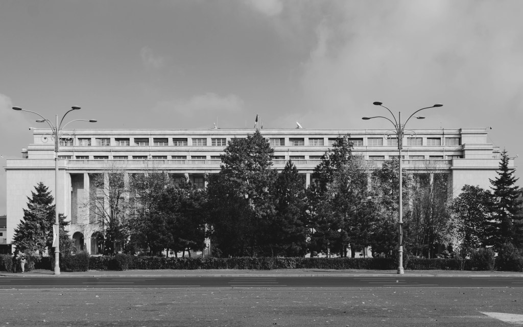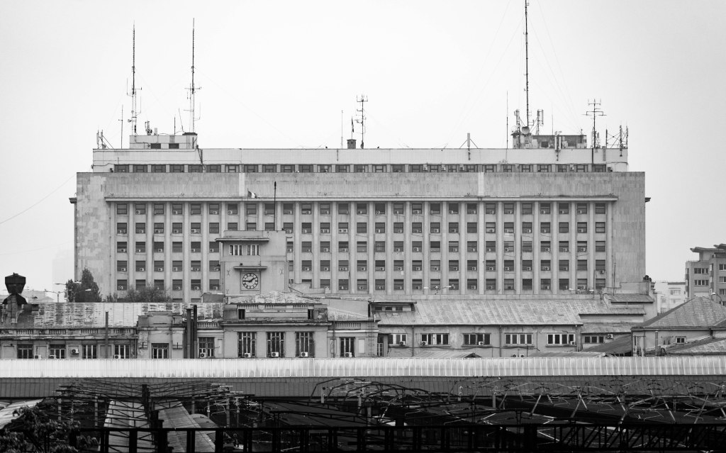 In front of Bucharest’s main train station, at the end of a small park that shelters homeless people and drug addicts, lies the CFR Palace. Massive, imposing and sober, the CFR Palace, also known as the Ministry of Transportation, is one of the first buildings that a visitor coming to Bucharest by train would notice. It is also one of the many architectural remains of totalitarian regimes scattered around Romania’s capital. Nowadays, Bucharest is a city of contrasts, split between abandonment and consumerism and decay and development, but for most of the past century, the city was the administrative centre of three gruesome dictatorships, a dark history that has left significant marks on the city’s identity. Bucharest’s monumentalism is mostly attributed to the infamous legacy of Ceausescu’s brutal regime, but buildings such as the CFR Palace evoke a different past, one that has been slowly erased from the people’s collective memory.