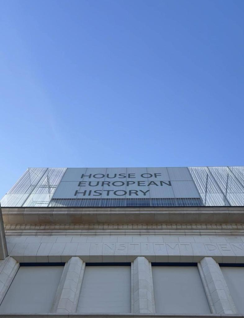 Maria and I took up security duty (stereotype in action but anyway, I digress). Danielle and Elly led the navigation efforts. Riccardo sat in the middle, as a communication link between the rear and the front. We arrived at BRXXL 5 hostel, an iconic low-cost hostel with a funky name, functional shared rooms, slightly chaotic lift and after a quick shower and a moment to remember who we were, we headed to our first official stop: the House of European History.